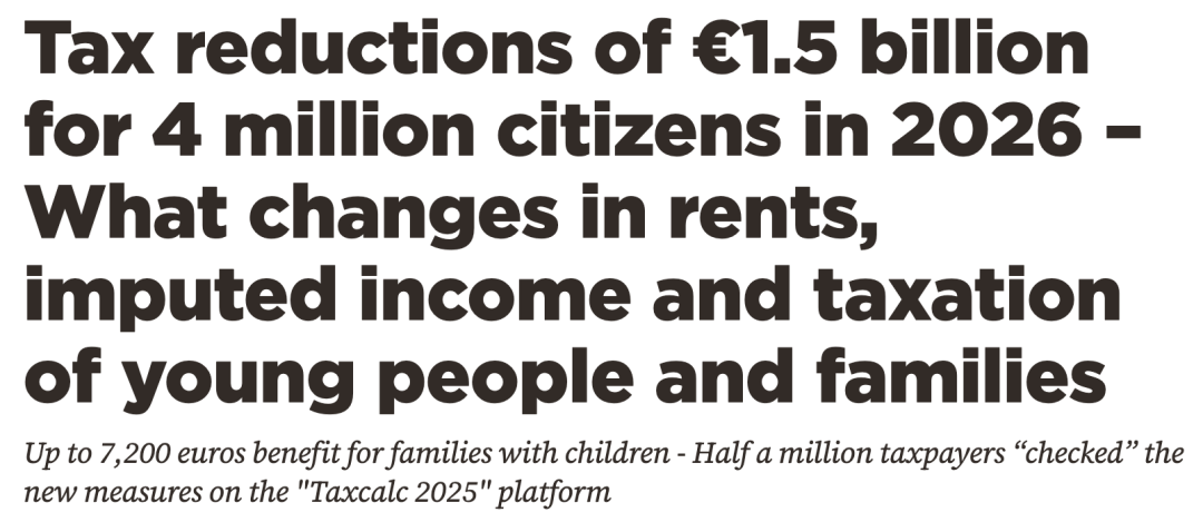 此外,还特地将房屋租赁的税收新增了一个区间。年收入租金在1.2万至2.4万欧元之间的业主,将按25%的优惠税率缴税,而35%的税率从2026年1月1日起仅适用于更高租金区间。