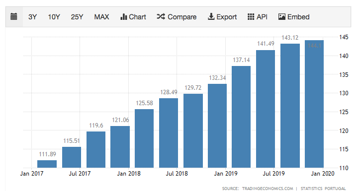 2017年1月至2020年1月葡萄牙房地产价格指数
